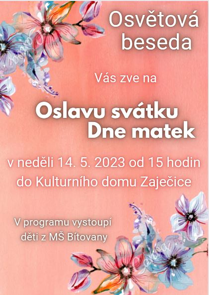Úvod > Dění v obci > Aktuality old > Osvětová beseda Zaječice Vás zve na Den matek